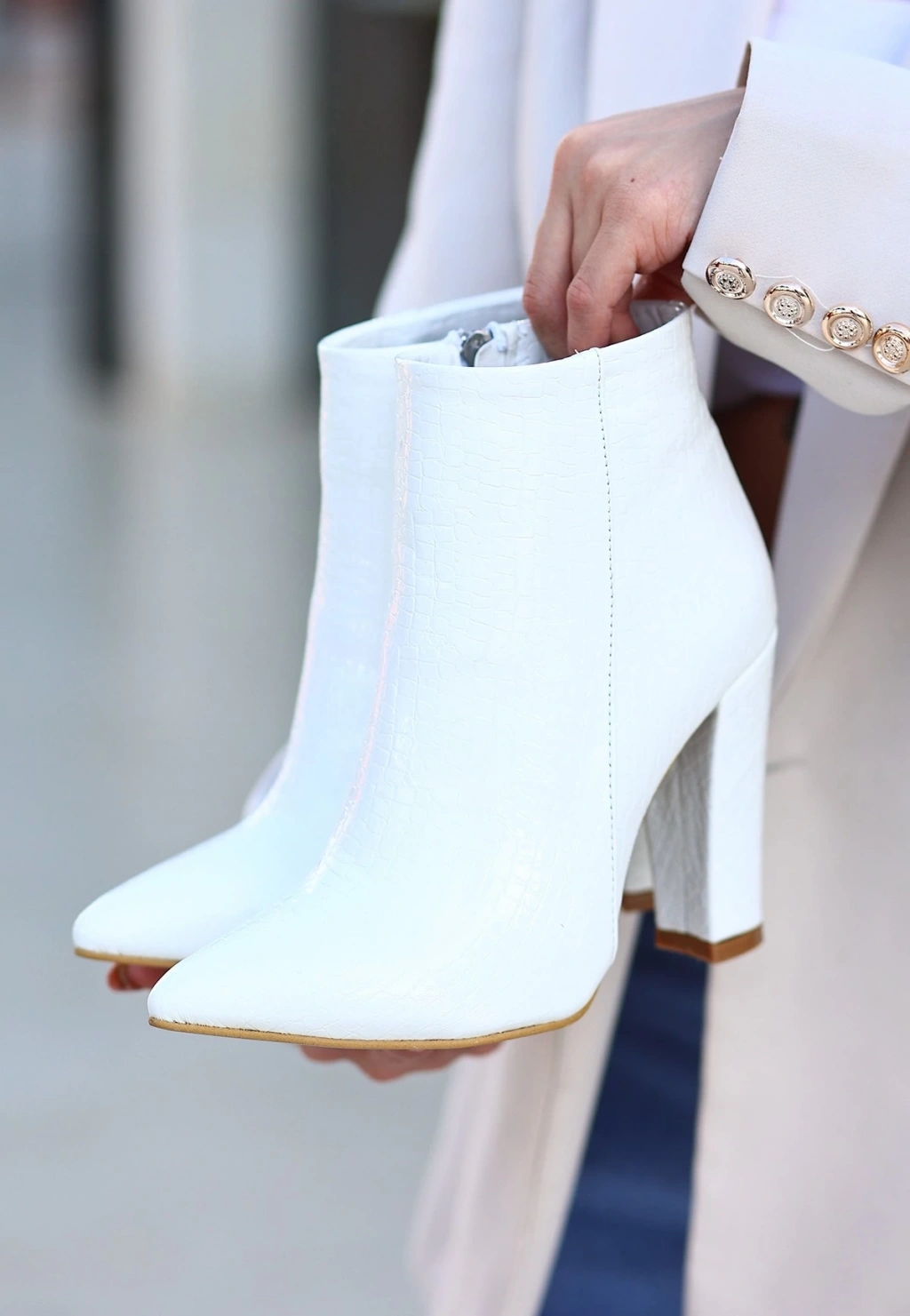 • Loora Beyaz Rugan Desenli Topuklu Bot