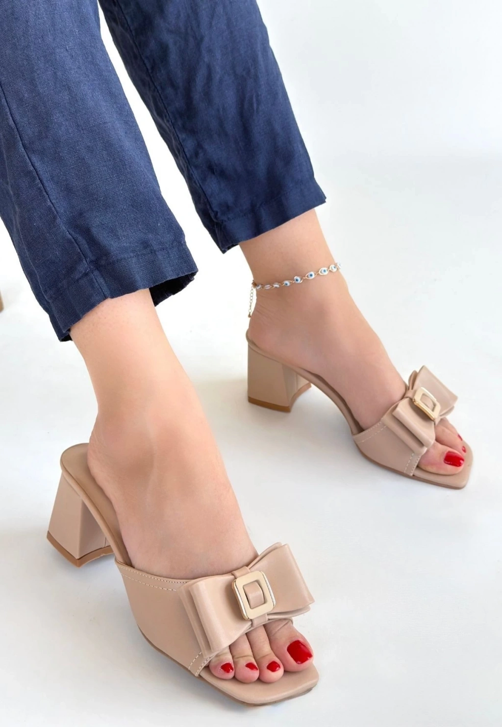 • Pier Nude Cilt Topuklu Terlik