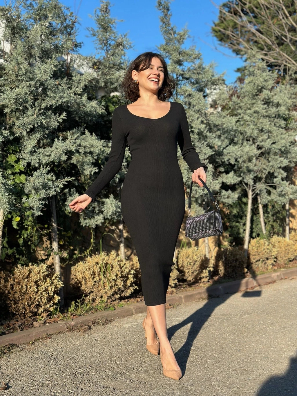 Bu siyah Midi Boy Elbise, şıklığı ve rahatlığı bir arada sunuyor. V yaka detayı ile feminen bir görünüm sağlarken, uzun kollu tasarımı sayesinde soğuk havalarda da tercih edebilirsiniz. Midi boyu ile günlük kullanıma uygun olan bu elbiseyi isterseniz topuklu ayakkabılarla şık bir kombin oluşturabilirsiniz. %100 pamuklu kumaşıyla gün boyu konfor sunarken, şık detaylarıyla da göz kamaştırıcı bir görünüm elde etmenizi sağlar.